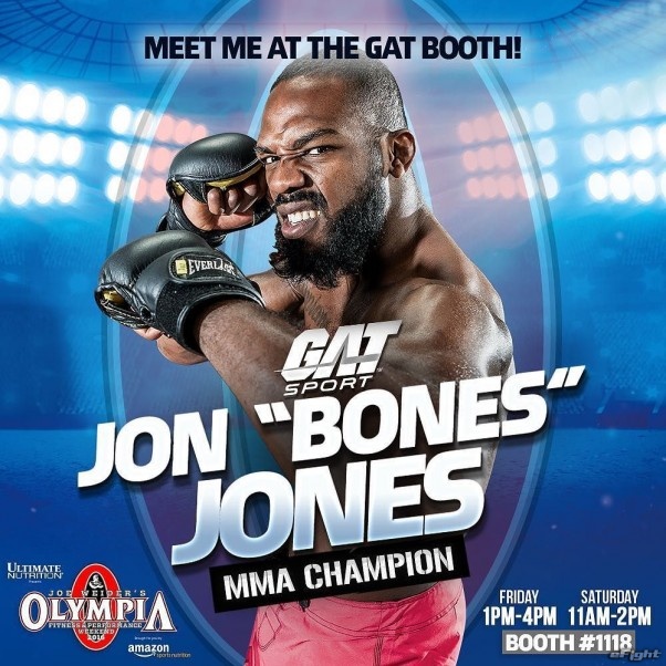 ラスベガスで行われたジョーンズのスポンサーのサプリメント・メーカー、GAT Sportのイベントポスターのジョーンズ(本人のツイッター https://twitter.com/jonnybones より)