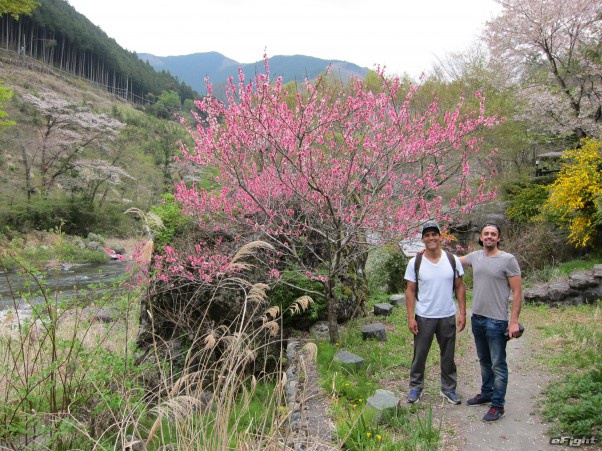 咲き誇る花を見てご満悦のフランク(左)と、カナダのテレビ局のハリス