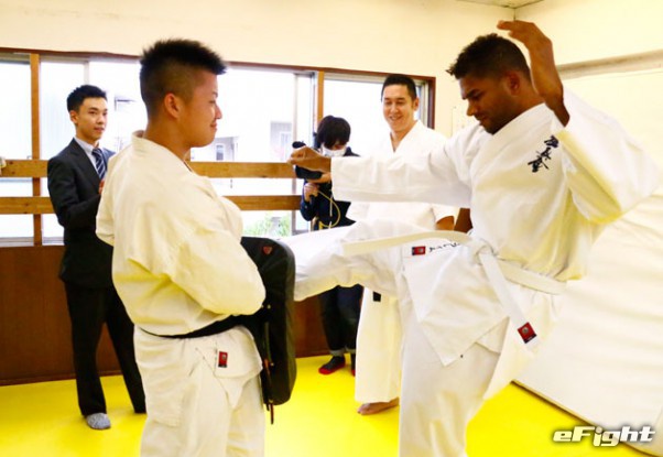 塚本徳臣(奥の人物)に空手の指導を受けたアリスター