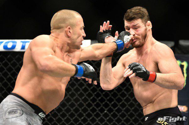 ビスピン(右)の顔面にパンチを叩き込むサンピエール(左)